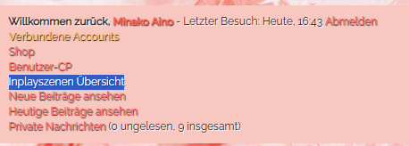 Könnte bei der IP-Anzeige, da der Link geändert werden, damit man auf die eigenen Inplayszenen kommt?  Dann wird einem auch angezeigt, wo man gerade dran ist, dass wäre bisschen übersichtlicher ♥